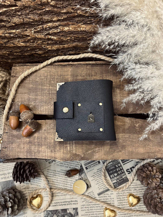 دفترچه چرم دستساز جیبداربا اویز مرغ امین