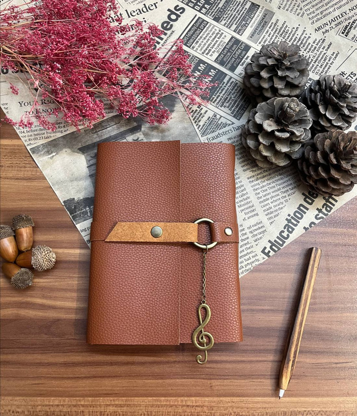 دفتر چرمی دستساز با اویز نوت موسیقی کایرا